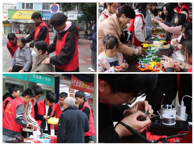 活动现场,志愿者们分工明确,各司其职。“奶奶,你家的水壶是电线短路了,我帮您换个线。”来自机电工程学院的青鸽服务队的志愿者们,耐心地检查社区居民地小家电,运用自己的专业,让居民们的小家电恢复正常工作。