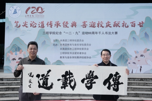 “广大青年要厚植家国情怀、涵养进取品格,以奋斗姿态激扬青春,不负时代,不负华年。”“百廿春秋林毓秀,英才辈出写辉煌”......为彰显爱国主题和校庆元素,比赛内容设置了爱国诗词、习近平总书记对青年的殷殷寄语以及校友贺三明学院120年校庆系列原创诗词三个板块。一个个方正的汉字、一幅幅精致的作品,融育了三明学院青年们爱党爱国爱校之心,更使书香与墨香盈满校园。