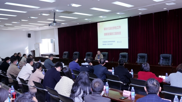 黄教授从高校学生工作的发展历史出发,阐述学生工作在人才培养过程中所承载的重要使命,指出学工队伍应该把创新工作理念和模式,促进学生成长成才作为常思常新的问题。