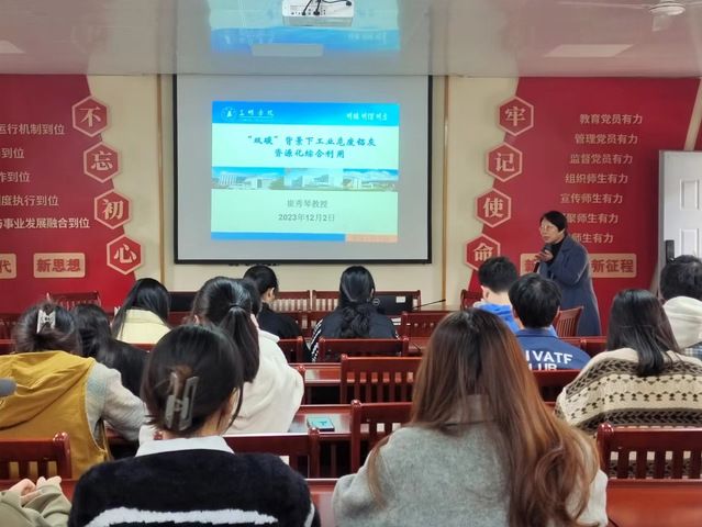 为提高建筑工程学院学生对绿色经济、固废资源化综合利用的理解,近日,建筑工程学院副院长崔秀琴教授在致用楼307会议室为学子们作题为《“双碳”背景下工业危废铝灰资源化综合利用》的专题报告。相关专业学生及教师参加本次专题报告。