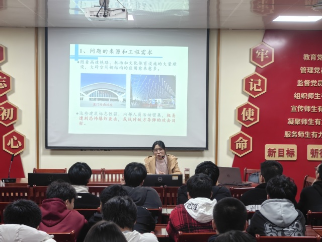 本次论坛特邀江夏学院工程学院博士付诗琦校友,作题为《大跨空间结构的内爆炸效应和抗爆措施研究》的专题学术报告。报告内容丰富,深入浅出,环环相扣,在场师生均表示受益匪浅,收获颇丰。