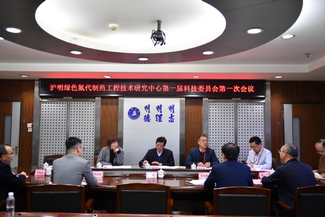 专题报告结束后,中心科技委员会全体成员在行政楼五楼会议室召开了第一届科技委员会第一次会议。经过充分交流和讨论,审议通过了以林国强院士为主任的第一届科技委员会成员名单,并审议通过了中心的建设方案。林院士对绿色氟代制药中心的建设思路给予了充分肯定,并对中心建设提出指导性建议,明确了中心的科研任务和研究方向。