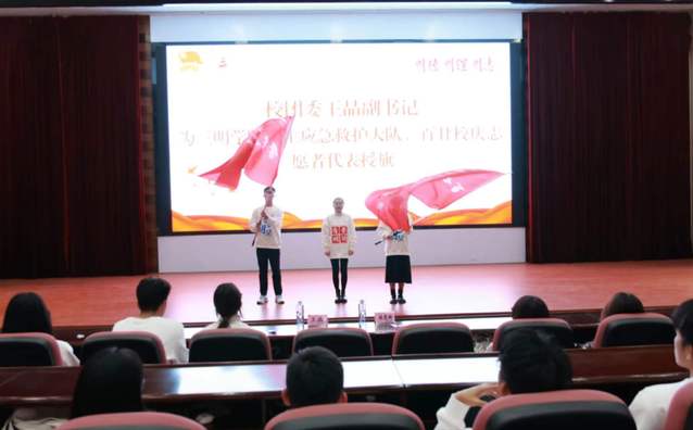 活动现场,校团委王晶副书记授予志愿者代表“百廿校庆志愿服务队”、“学生应急救护大队”队旗。志愿者们身着百廿校庆志愿服、重温百廿校庆志愿者招募、培训的精彩瞬间、集体佩戴百廿校庆臂章,揭开百廿校庆志愿服务活动的序幕。