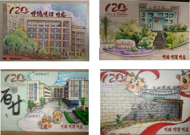 本次活动主要围绕三明学院120周年校庆主题,同学们通过绘画的方式,勾勒出记忆中明院最美的风景或与明院最值得回忆的画面。此次活动分为明信片组和漫画组等两个赛道,其中明信片组赛道收到300份作品,漫画组赛道共收到91份作品。同学们用七彩画笔描绘青春明院,以美好祝福共庆明院百廿华诞。