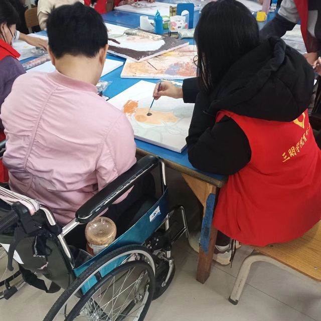 伴着淅淅沥沥的小雨,志愿者满怀热情地来到了福利院,他们的到来给这座安静的福利中心带来了绵绵不绝的欢声笑语。志愿者与孩子们互动,倾听专属于他们的故事。福利院的负责人为孩子们准备了丰富的绘画材料,让他们发挥自己的想象力和创造力,制作出自己喜欢的绘画作品。孩子们非常认真地投入到制作中,萤火虫志愿队与孩子们共同完成了一件件精美的作品。“他们的眼睛像璀璨的星辰,他们的笑容让我们深深感受到生活的美好和力量。此次看望之旅,让我们更加深刻地认识到残疾儿童所面临的困境和挑战。在此,我们呼吁更多的人关注残疾儿童群体,为他们提供更多的关爱和支持。”此次参与志愿服务的志愿者如是说道。