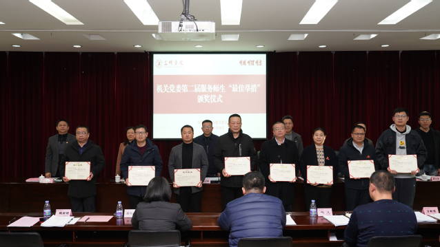 12月26日,三明学院机关党委第二届服务师生“最佳举措”评选活动圆满落下帷幕,校党委副书记廖景榕、李莉星出席颁奖仪式并为获奖支部颁发荣誉证书。