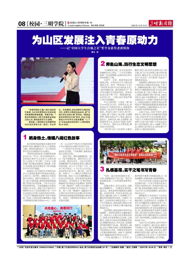 【三明新周报】为山区发展注入青春原动力———记“中国大学生自强之星”奖学金获得者黄秋韵