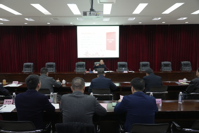 2023年12月29日上午,三明学院党委理论学习中心组围绕“增强法治思维,全面推进依法治校”专题,在行政楼八楼会议室召开扩大学习会。全体在家校领导,机关部门负责人、二级学院党政负责人参加学习。校党委副书记廖景榕主持学习会。