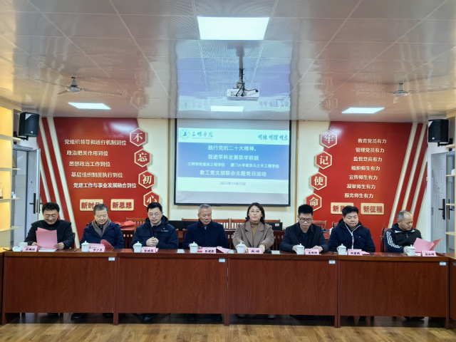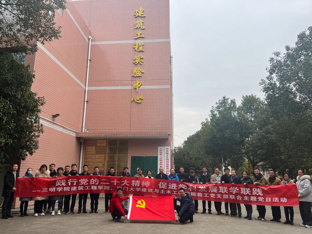 为进一步学习贯彻习近平新时代中国特色社会主义思想,充分发挥党建引领作用,推进党建业务深度融合,教育引导广大党员干部在社会实践中锤炼党性修养,在攻坚克难中推进事业发展,12月23日,建筑工程学院土木工程系教工党支部与厦门大学土木工程学院教工党支部开展联学联践主题党日活动。