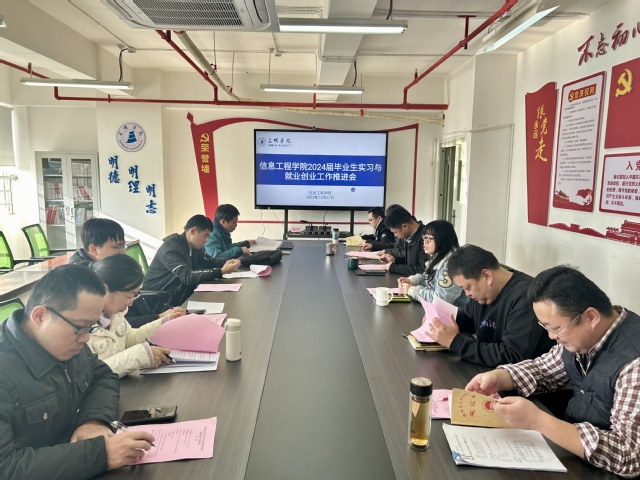 为深入贯彻落实全省和学校2024届高校毕业生就业创业工作会议精神,研究部署做好2024届毕业生就业创业工作,12月27日下午,信息工程学院在知新楼614召开2020届毕业生实习与就业创业工作推进会,学院领导班子、系主任、专业负责人、毕业班辅导员和中兴通讯教师参加会议。会议由陈秀里副书记主持。