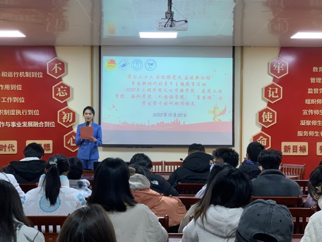 为深入学习贯彻习近平总书记关于青年工作的重要思想,着力培养和输送一批能力突出、素质优良、作风过硬的学生骨干,近日,文化传播学院、建筑工程学院与海外学院(外国语学院)联合举办2023年青苗骨干培训班,引领学生骨干在学思践悟中坚定理想信念,在奋发有为中践行初心使命。