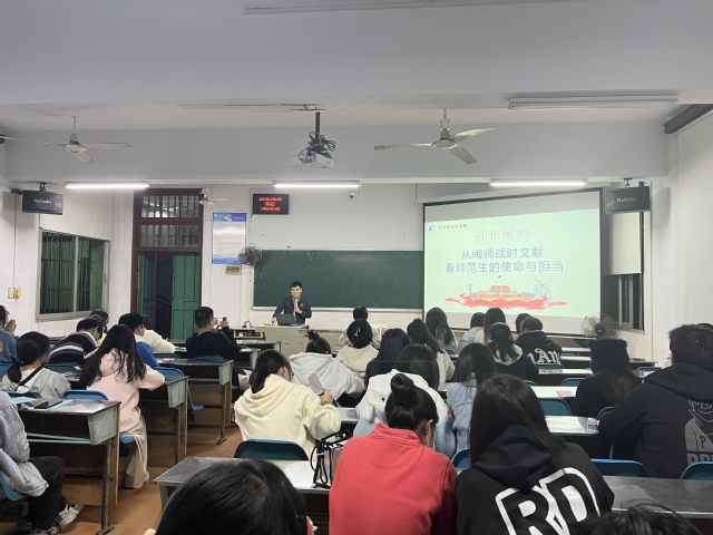 为迎接三明学院办学120周年和本科办学20周年,增加同学们“强师报国”的使命担当,坚定“为师,心怀‘国之大者’”的理想信念,提高社会责任感和时代使命感,12月6日晚,三明学院马克思主义理论读书社于理工二A智慧教室开展“从闽师战时文献看师范生的使命担当”读书沙龙活动,指导老师邓然主讲。