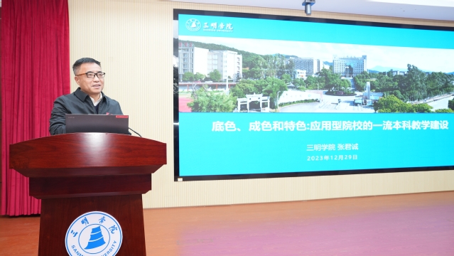 会上,三明学院校长张君诚教授作主题报告,报告立足新时代一流应用型高校建设,结合教育教学工作实际,提出打造具有“底色、成色和特色”的应用型院校的一流本科教学的思路和举措。福建师范大学、泉州师范学院、闽江学院、福建信息职业技术学院等高校代表,也从质量保障体系、新一轮审核评估、职业教育教学改革等不同视角交流分享工作实践和探索成果。
