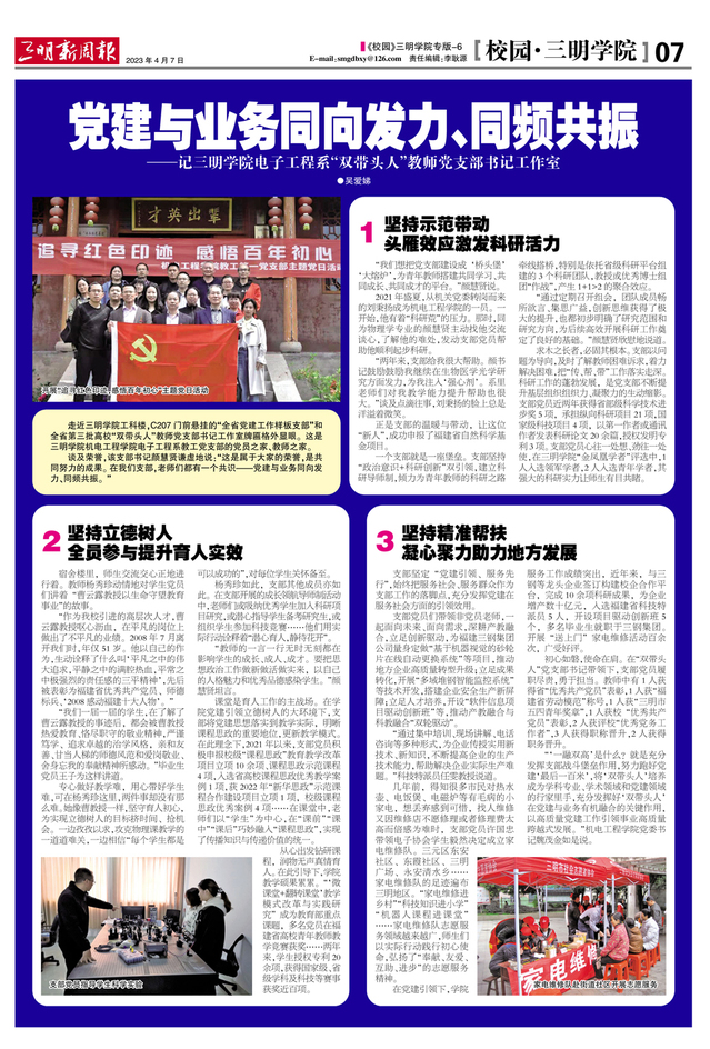 【三明新周报】党建与业务同向发力、同频共振——记三明学院电子工程系“双带头人"教师党支部书记工作室