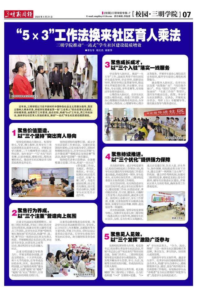 【三明新周报】“5x3”工作法换来社区育人乘法——三明学院推动“一站式"学生社区建设提质增效