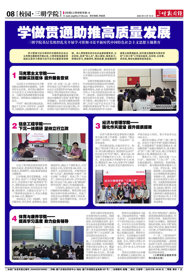 【三明新周报】学做贯通助推高质量发展——三明学院基层竟组织扎实开展学习贯彻习近平新时代中国特色社会主义思想主题教育
