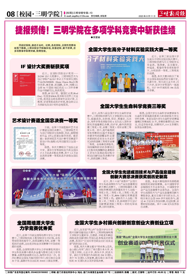【三明新周报】捷报频传!三明学院在多项学科竟赛中斩获佳绩
