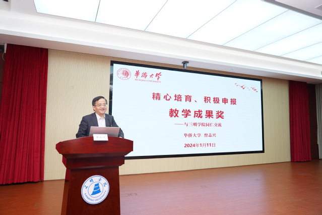 会议特邀2020年高等教育省级教学成果特等奖获得者、华侨大学研究生院院长曾志兴教授作专题培训。曾院长结合申报经历和指导经验,从教学成果奖的意义、要求和申报三个方面做了详实分析与生动讲解,为学校教学成果奖的申报工作厘清了思路、指明了方向。