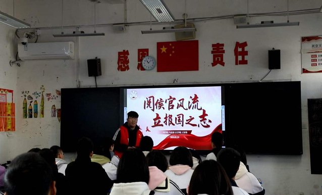 “侯官先贤以一腔热血报效祖国,他们是我们学习的榜样……”来自三明学院马克思主义学院的青年志愿者王家炜同学在三明市第四中学与同学们分享侯官文化中蕴含的“爱国兴邦”家国情怀故事。