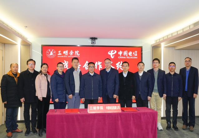 1月25日,三明学院与中国电信股份有限公司福建分公司在福州签订战略合作框架协议。校党委副书记、校长张君诚,党委副书记李莉星;中国电信福建分公司党委副书记、副总经理黎树旺,党委委员、副总经理杨洋等出席签约仪式。