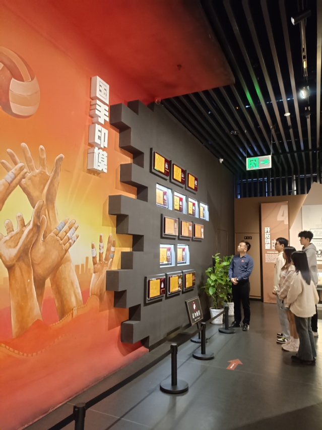 实践队首站来到了漳州体育训练基地——中国女排腾飞馆,这里见证了无数中国女排的辉煌时刻。在讲解员的引领下,队员们参观了漳州中国女排精神展示馆,馆内陈列着丰富的历史资料和珍贵的实物,让队员们仿佛穿越时空,亲历了中国女排从艰难起步到世界之巅的传奇历程。每一件展品都讲述着一个动人的故事,每一面奖牌都闪耀着女排姑娘们的汗水与智慧。队员们被这种坚韧不拔、勇往直前的精神深深打动,纷纷表示要将这种精神内化于心、外化于行。
