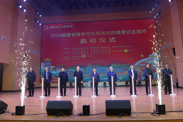 3月8日,2024福建省铸牢中华民族共同体意识主题月活动启动仪式在三明学院举行。福建省委统战部副部长、省民族宗教厅党组书记、厅长兰明尚,新疆维吾尔自治区民族事务委员会党组副书记、主任马合木提·吾卜卡斯木,福建省政协民宗委主任林卫宠,共青团福建省委副书记张阿峰,福建省民族与宗教事务厅二级巡视员钟声,三明市政协副主席、民盟三明市委员会主委曾明生,三明学院党委书记赖锦隆、校长张君诚、副书记廖景榕出席启动仪式。