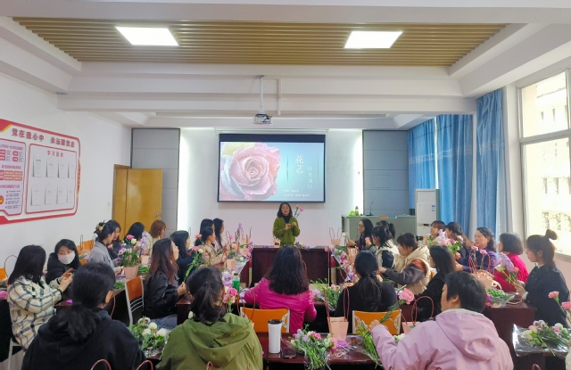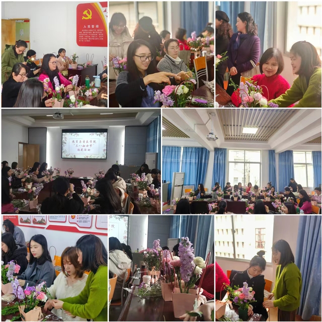 阳春三月,最美不过你们。在第114个“三八”国际劳动妇女节来临之际,3月6日下午,教育与音乐学院组织全体女教职工开展插花艺术活动,共度佳节。活动邀请了专业插花艺术老师现场指导。全体院领导也参加了活动。