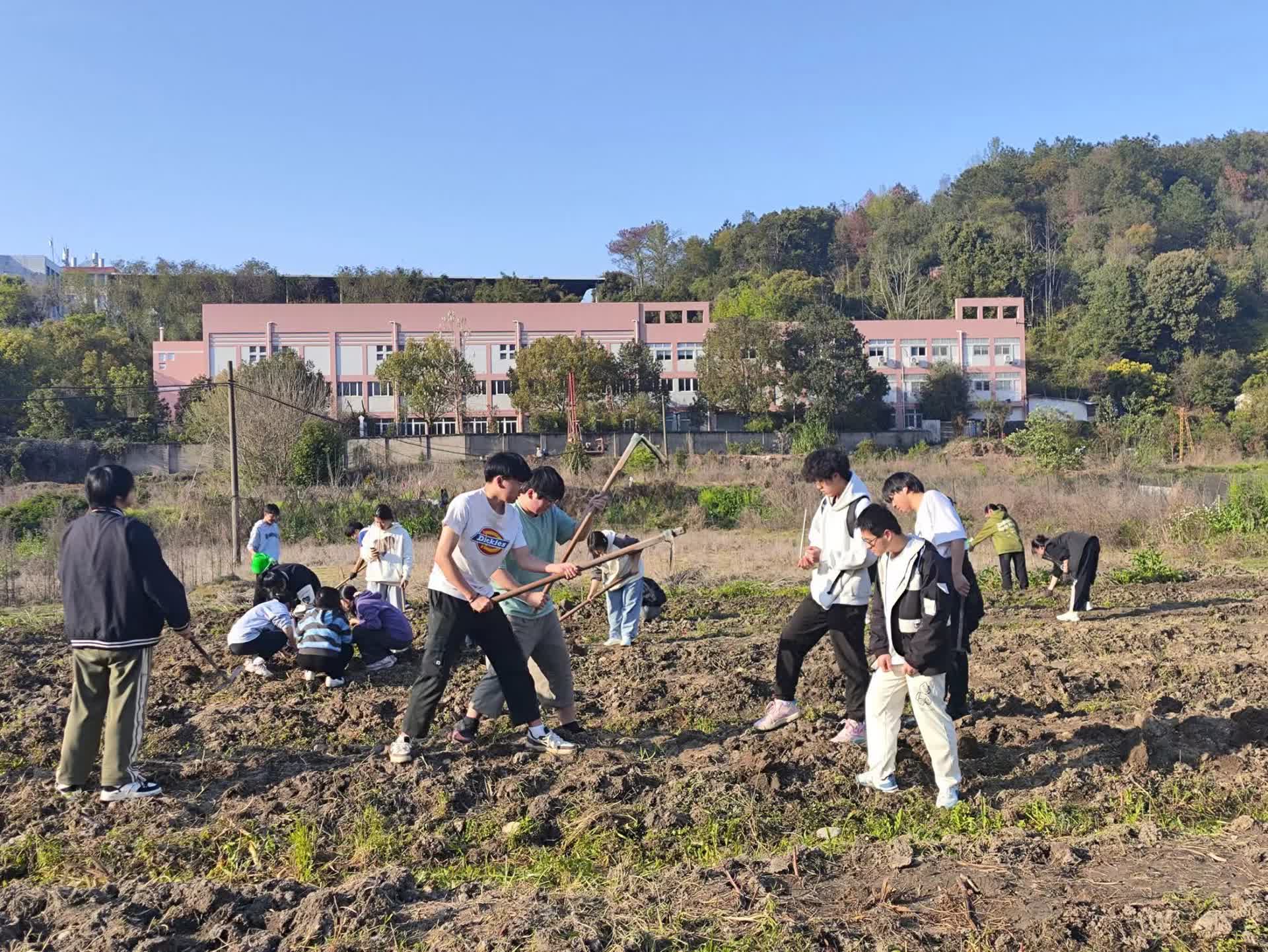 3月12日,在春意盎然的季节里,经济与管理学院以第四十六个植树节为契机,为贯彻落实学校“三引三提”工作布置会精神,组织师生前往劳动实践基地,共同开展了一场意义非凡的劳动实践活动。沐浴在春日暖阳下,师生们手持劳动工具,脚踏肥沃泥土,投身于这场既艰苦又充实的绿色劳动之中。