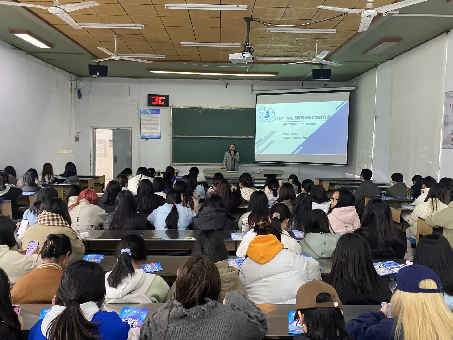 为增强学生对电信网络诈骗的认识,提高学生的安全意识,建设平安校园,马克思主义学院于3月13日下午在明德楼(二)407教室开展“预防电信网络诈骗”主题活动。此次活动由马克思主义学院学生科负责人李志刚主讲,学院全体学生参加。