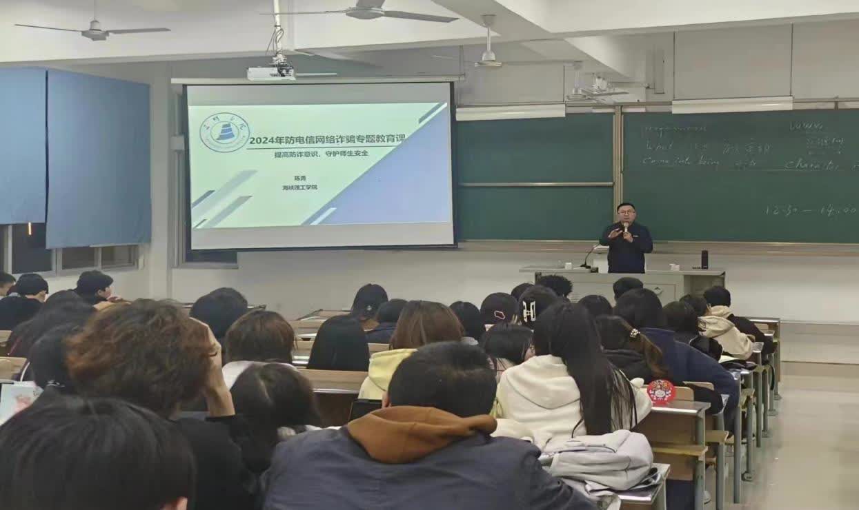 讲座通过观看案例视频还原导入,结合学生受骗真实案例系统分析了当前我国反诈工作总体形势,对诈骗的类型、特点以及防范措施向同学们进行了深入介绍。他指出,诈骗活动手段多样、隐蔽性强,要规避陷阱必须做好以下两点:一是不轻信各类赚钱返利的花言巧语,切勿贪图小便宜;二是下载安装“国家反诈中心APP”,筑牢安全“防火墙”。