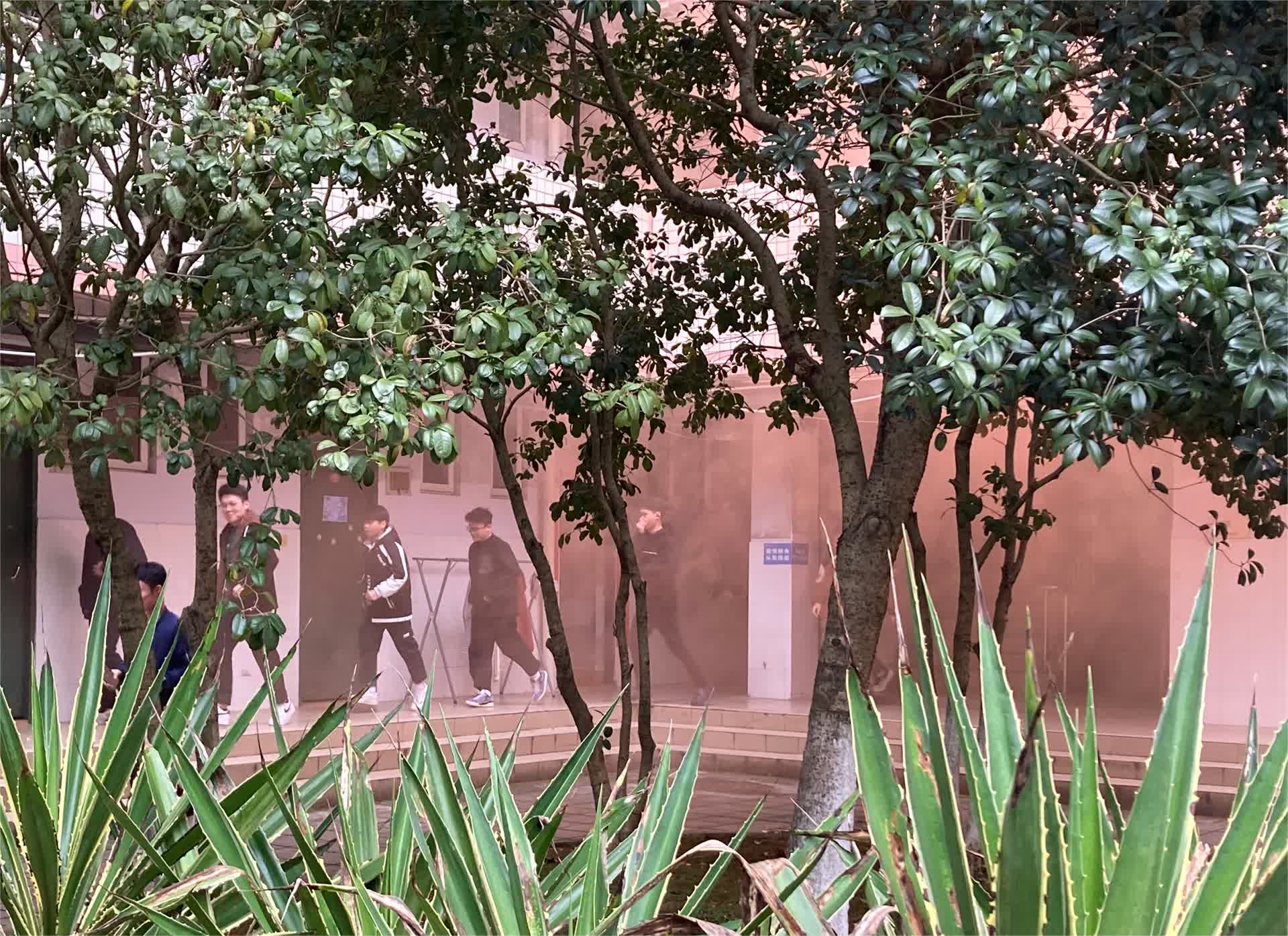 随着三声急哨,消防安全演练正式开始。同学们迅速反应,利用湿毛巾捂住口鼻,弯腰小步快走,按演练方案的疏散线路从楼梯迅速且有序下楼。在抵达安全位置后,各班负责同学进行了人数清单和汇报。随后,陈俊树副书记对演练过程进行了点评,强调了逃生过程的注意事项。