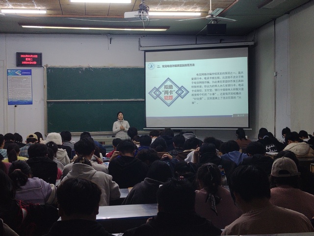 3月12日,学院党委副书记在明德楼为160余名学生上了一堂生动的“2024年防范电信网络诈骗”专题教育课,介绍我校、我们身边发生的电信诈骗真实案例与被诈骗金额,总结被电信诈骗的原因,结合具体案例详细讲解了高校刷单、虚假投资理财、冒充客服、游戏交易诈骗等常见的诈骗类型,帮助同学们切实感受电诈的手段与危害。同时,思政队伍针对学生群体结合开学第一课积极开展反诈宣传教育主题班会,线上线下共计开展主题班会26场次,覆盖在校学生1103人,确保全员覆盖、全员教育。