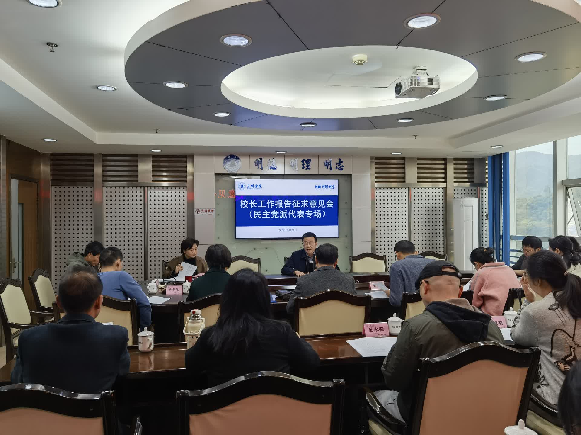 3月21日上午,学校召开党外代表人士征求意见座谈会,就即将召开的三明学院四届三次教职工暨工会会员代表大会上的校长工作报告(征求意见稿)征求党外代表人士意见建议。校党委副书记廖景榕,统战部、学校各民主党派、统战团体负责人及无党派人士代表等参加会议。