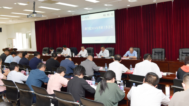 3月27日,三明学院2024年科研工作会议在八楼会议室召开,校党委书记赖锦隆,校党委副书记、校长张君诚出席会议,副校长吴龙主持会议。