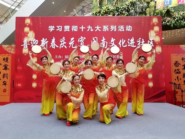 肖淑萍老师坚持着传承非遗文化的初心,踊跃参加各类展演活动,开办讲座,进一步宣传和普及厦门跳鼓舞非物质文化遗产知识。闽南民间舞蹈文化逐渐在大众眼前浮现,绽放新生光芒。她主动联系学校与社区,免费提供教学,推动跳鼓舞走入校园,走进厦门人民的生活。