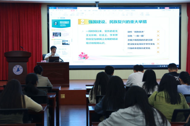 4月11日下午,校党委委员、纪委书记游龙桂以“铸牢中华民族共同体意识,共同绘就中华民族伟大复兴壮美画卷”为主题,在图书馆报告厅为文化传播学院学子讲授思政课。