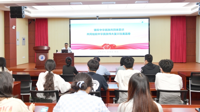 游龙桂从国情出发,以历史的角度回顾了中华民族共同体意识的形成与发展,强调了这一意识在维护国家统一、促进民族团结中的重要作用。通过生动的案例和详实的数据,阐述了我国民族团结进步事业取得的显著成就,以及三明学院在推动民族团结进步工作中的积极探索和具体成效,让在场师生对如何铸牢中华民族共同体意识,推进民族团结进步有了更深刻更全面的理解和把握。他希望各族学子像石榴籽一样紧紧抱在一起,在铸牢中华民族共同体意识的生动实践中走在前、做表率,用自己的智慧和力量共同绘就这幅壮美画卷。
