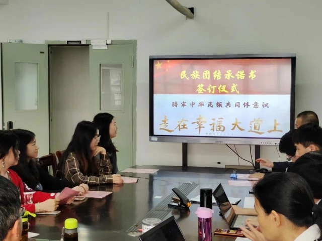 信息工程学院将习近平总书记关于民族工作的重要论述纳入党委会、理论学习中心组、三会一课、主题党团日学习,广大师生们进一步了解“铸牢中华民族共同体意识”的重要性和内涵。各党支部围绕主题采取了现场教学、志愿服务、师生座谈会、党员先锋结对帮扶、签订民族团结承诺书等多种形式,增强对中华民族的认同感和归属感。
