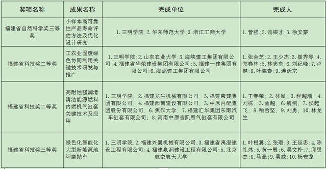 近日,福建省人民政府发布《福建省人民政府关于2022年度省科学技术奖励的决定》,三明学院作为第一完成单位,共4个项目获奖,创历史新高。其中,信息工程学院管强教授团队与华东师范大学等单位合作的“小样本高可靠性产品寿命评估方法及优化设计研究”项目,首次以第一完成单位获自然科学奖三等奖。