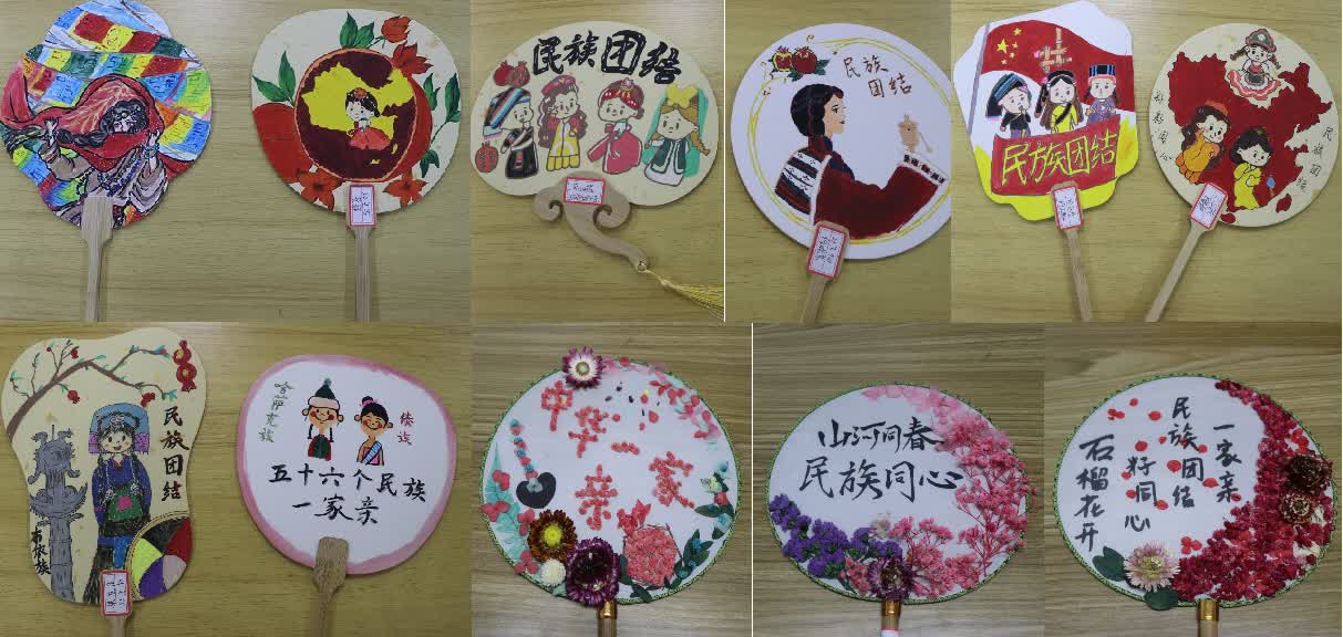 手绘传意,石榴花开。学院构建“资助+民族团结”的模式,举办了民族风团扇制作比赛。同学们紧扣民族团结的主题,分别用彩笔、永生花制作精美的团扇,通过一笔一画、一花一叶的点缀生动展现了别具民族特色的作品,绘就各民族“同呼吸、共命运、心连心”的和美画面。