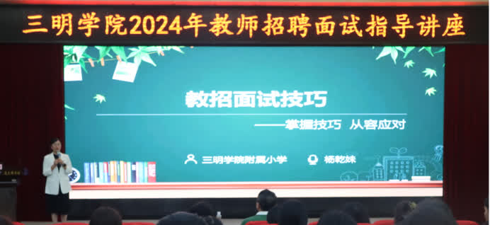 4月12日下午,由学生处主办,教育与音乐学院承办的2024年教师招聘面试指导讲座活动于三明学院图书馆学术报告厅举行。