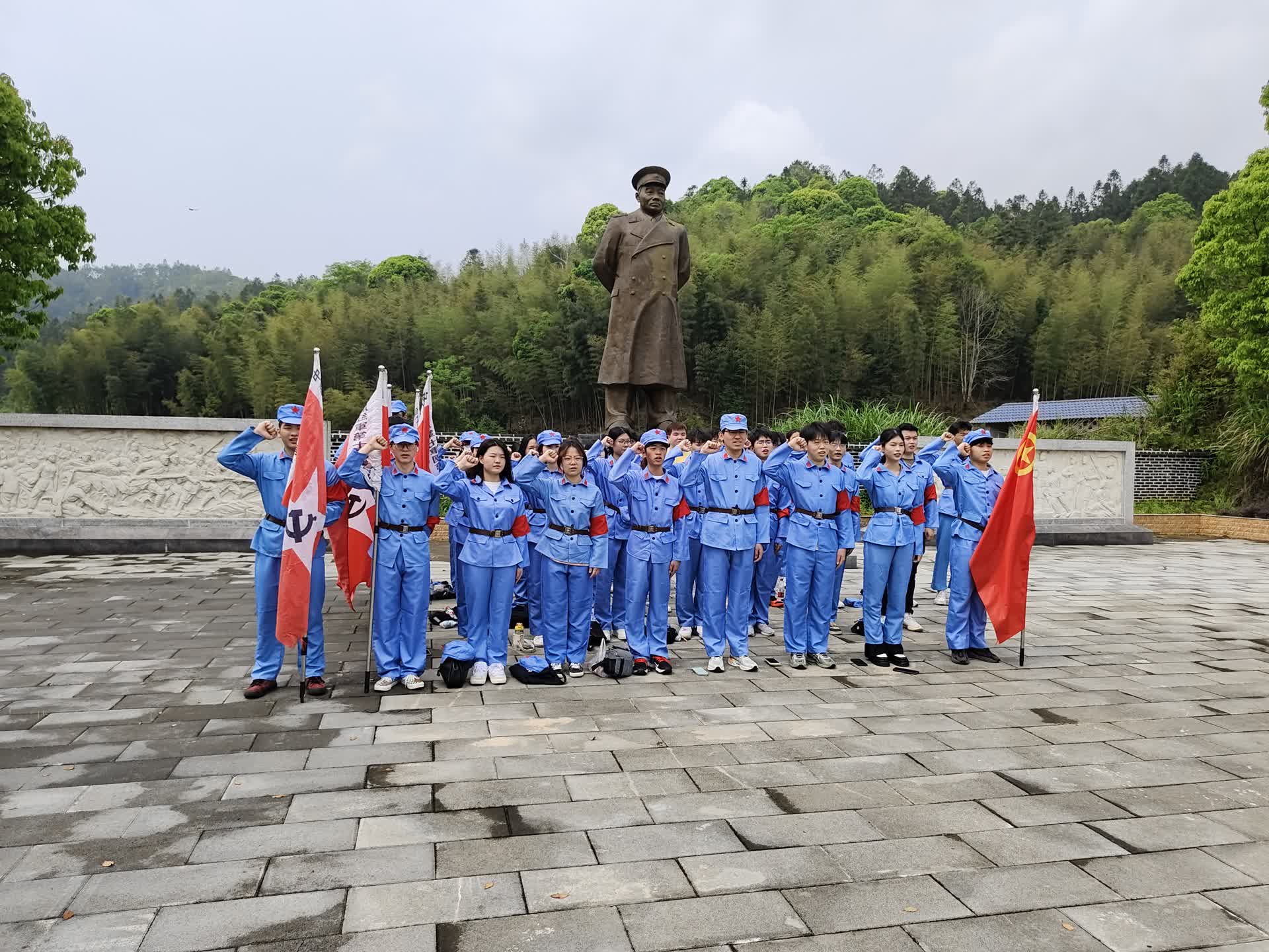 在御帘村,同学们身着红军服,先后参观了红色文化馆、东方军御廉司令部遗址、红军战地医院、廉政馆、乡愁馆,探访了彭德怀、杨尚昆故居,每一处历史遗迹都生动再现了先辈们不畏艰险、勇于革命的革命精神。在宣传馆,全体成员观看了御帘村宣传教育片,聆听御帘村“红色党建领航乡村振兴”的美好故事,切身感受历史文化底蕴和生态宜居设计之间的巧妙结合。参观结束后,同学们到彭德怀雕像前整齐列队,重温入党誓词,铭记党史铸辉煌,恪守初心担使命。