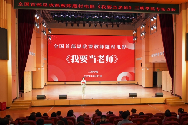 4月17日,全国首部思政课教师题材电影故事片《我要当老师》点映式在三明学院艺术楼音乐厅举行,马克思主义学院全体教师、辅导员及学生代表500余人观看影片。