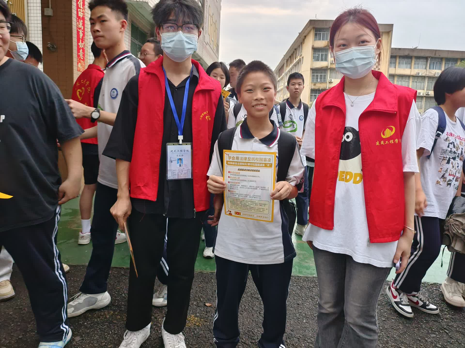活动中,志愿者一边分发反霸凌宣传手册,一边耐心的用通俗易懂的语言以案释法、以案学法,通过真实案例,深刻揭示校园霸凌的多样性和潜在危害,鼓励同学们在面对霸凌行为时要勇敢发声,坚定地说“不”,积极寻求老师、家长的帮助。希望大家能够心存规则意识,有法律观念,学会用法律武器维护自己的合法权益。不做校园暴力的欺凌者,不做沉默的受害者,不做冷漠的旁观者,坚决抵制校园霸凌,共建平安校园。