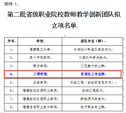 近日,根据《福建省教育厅办公室关于开展第三批国家级职业教育教师创新团队及第二批省级职业院校教师教学创新团队申报工作的通知》(闽教办师〔2023〕16号),经自主申报、专家评审,确定第二批省级职业院校教师教学创新团队立项名单。全省共立项40项,资化学院资源化工专业群成功入选。