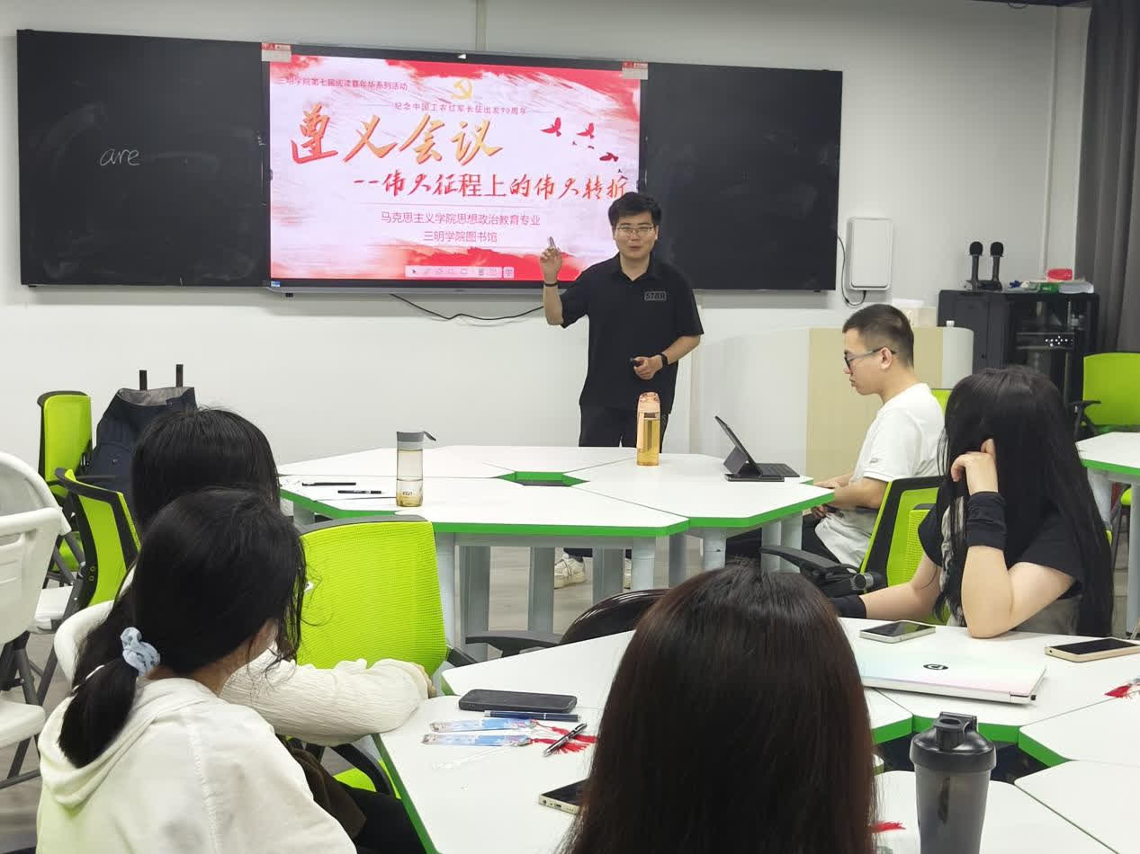 2024年是红军长征出发90周年,为深入贯彻落实习近平总书记相关重要指示批示精神,引导青年学子继承和发扬长征精神,4月12日晚,三明学院马克思主义理论读书社于理工二A智慧教室开展“遵义会议——伟大征程上的转折”的读书分享会活动,指导老师邓然主讲。