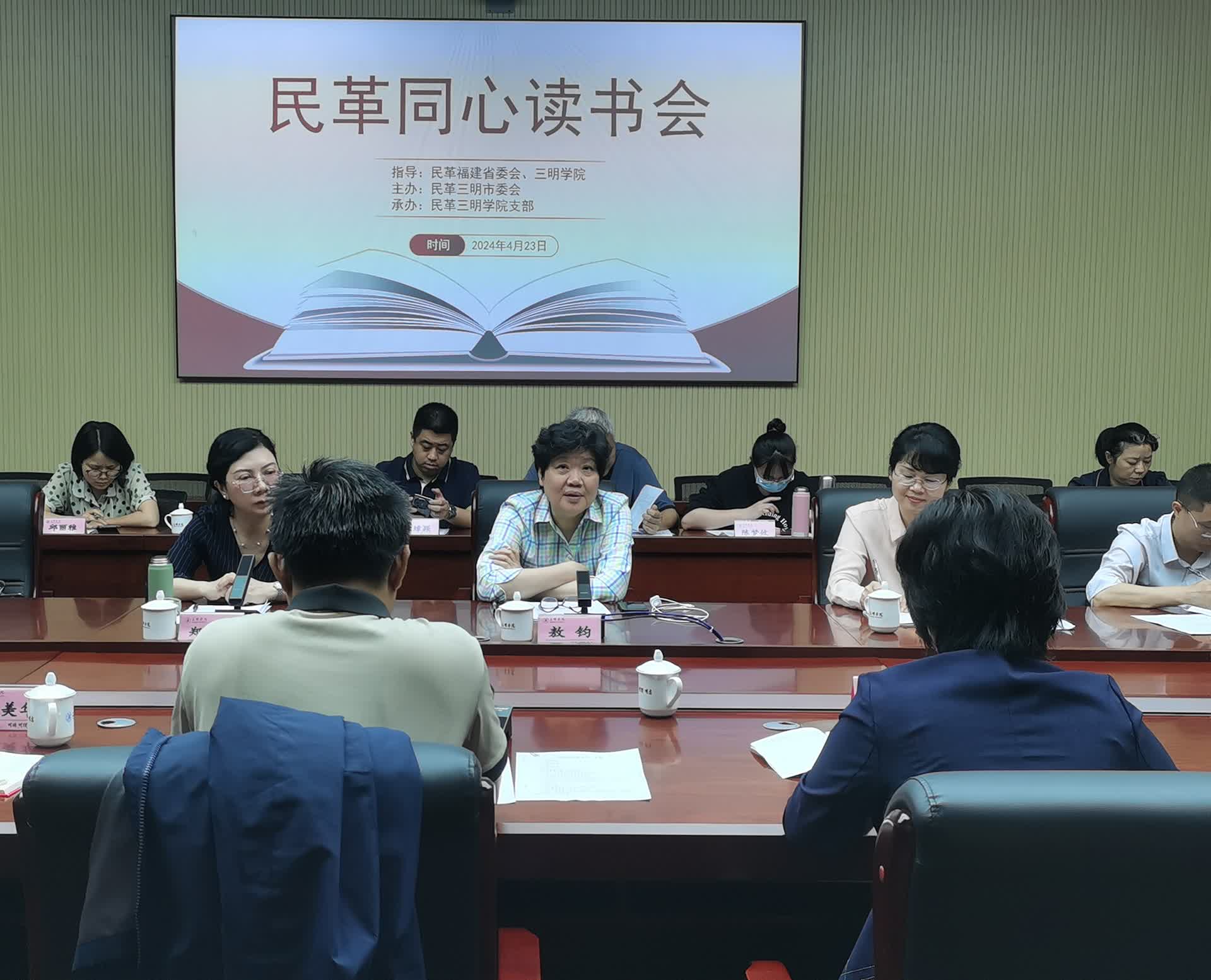 4月23日上午,民革三明学院支部“同心读书会”活动在三明学院举办。民革福建省委会秘书长、二级巡视员敖钧,民革三明市委会主委、三明市城管局局长冯火珠,民革福建省委会宣传处二级调研员郑长青,民革三明市委会、民革三元区第一基层委员会、民革三元区第二基层委员会、民革三明学院支部党员逾30人参加读书会活动。校党委书记赖锦隆、副书记廖景榕会见了民革福建省委会敖钧秘书长一行,校党委统战部参加相关活动。