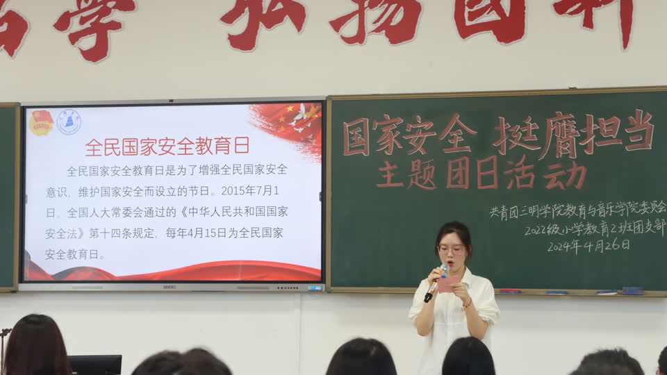 4月26日,教育与音乐学院2022级小学教育2班团支部开展“国家安全,挺膺担当”示范性主题团日活动。