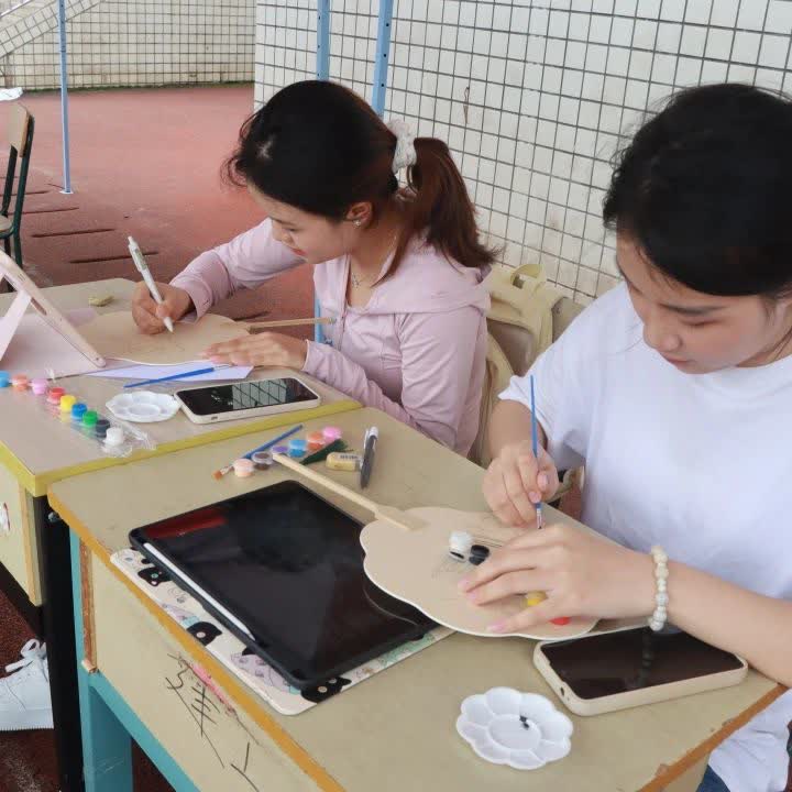 此活动主要是以空白扇子或空白帆布包为画板来绘画出“献礼新中国成立75周年”主题的画作。活动现场,参加者挑选了工作人员提供的主题或者自己准备的主题开始作画,每个人都投入其中,画出心仪的画。画作完成后可以拿上自己完成的作品进行拍照打卡,最后将画作交与负责人进行统一评比。