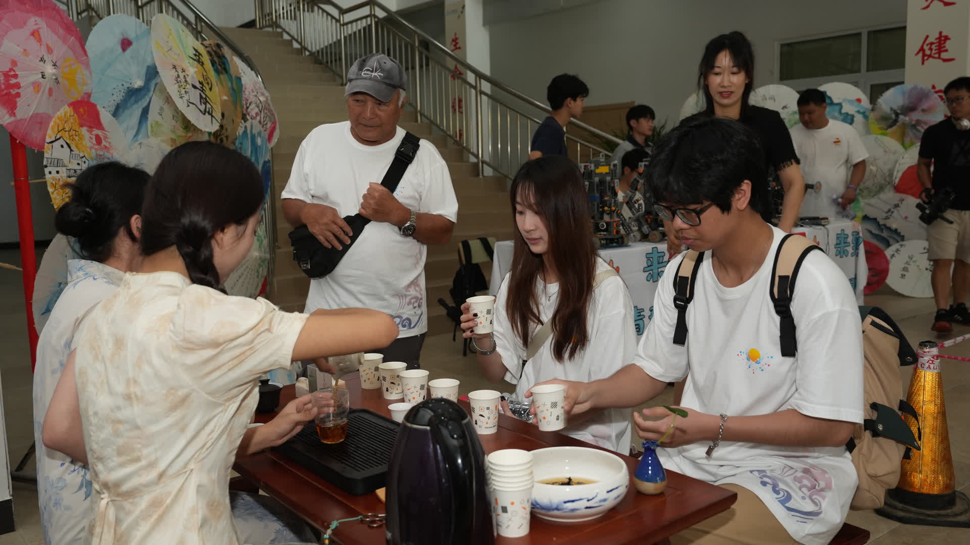 台湾高校师生一行先后走进我校校史馆、古籍室和国家级众创空间,了解学校的办学历史、校园文化、学习环境等,切身感受百年闽师的文化底蕴。在南区学生活动中心一楼大厅,机器人协会、书法协会等10个社团精心准备了机器人舞蹈、书法、摄影、篆刻、绘画等作品展览和古琴演奏、植物标本制作、手工花、黏土、扎染等文化体验活动,充分展示了中华优秀传统文化的魅力和我校青年大学生的创新创造实践风采,活动受到台湾师生的高度赞誉和踊跃参与。